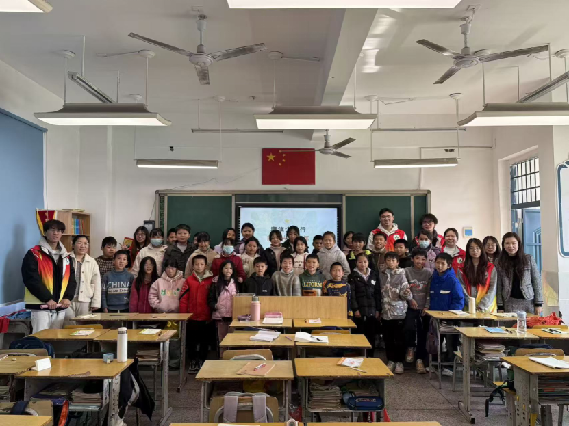 在小溪中心小学五年级一班的课堂上,志愿服务团队用“知识宣讲+趣味互动”的形式,让教育更有温度。谭熠辉同学围绕垃圾分类知识展开讲解,将专业环保知识转化为孩子易懂的语言;古慧琼同学设计趣味问答环节,充分调动课堂氛围,让孩子们在互动中掌握分类技巧。随后,余岚歆同学带来红色文化宣讲,通过詹天佑攻坚克难筑铁路、黄文秀扎根基层助脱贫的感人事迹,让红色基因在孩子们心中种下种子。程霞老师在总结时与同学们亲切交流,鼓励大家既要做守护绿水青山的“环保小卫士”,更要做传承红色精神的“薪火传承人”,让理想信念从小扎根。