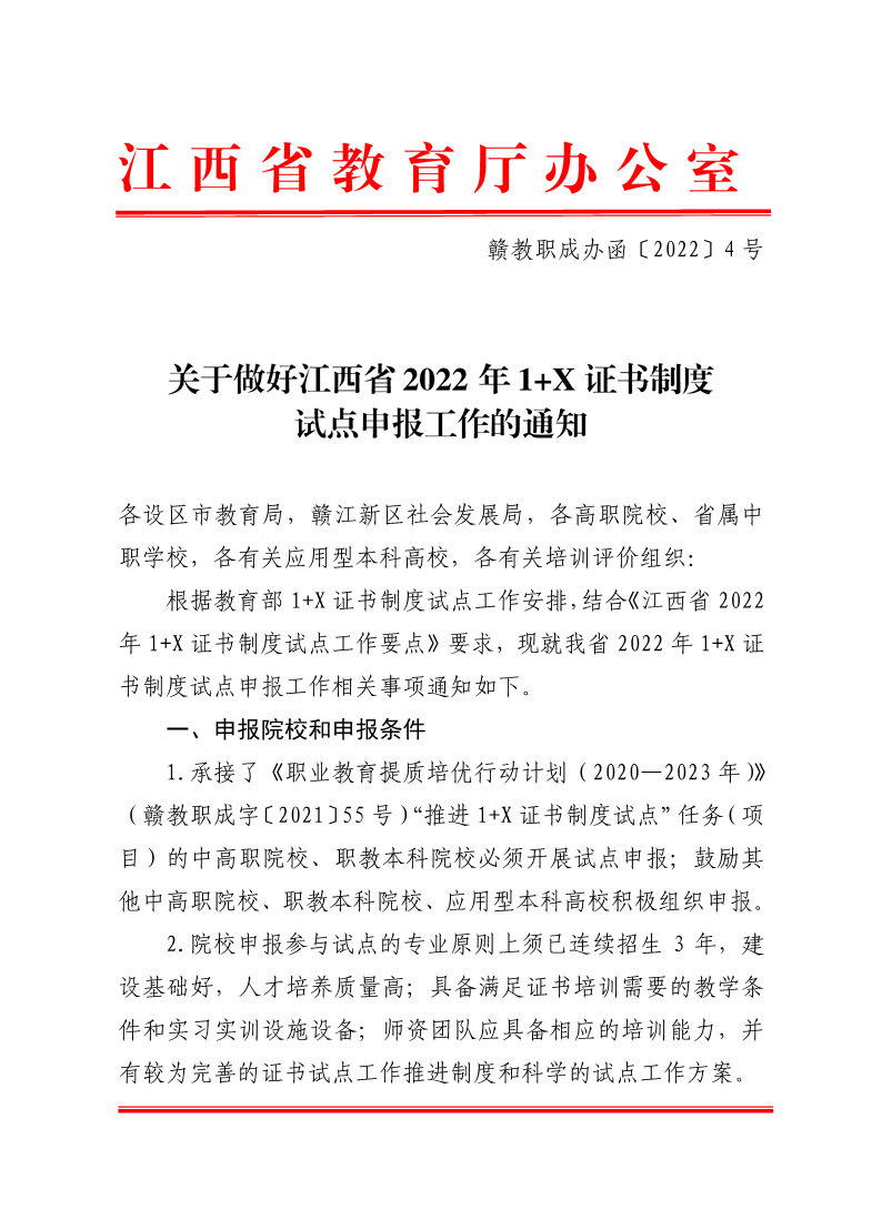 关于做好江西省2022年1+X证书制度试点申报工作的通知