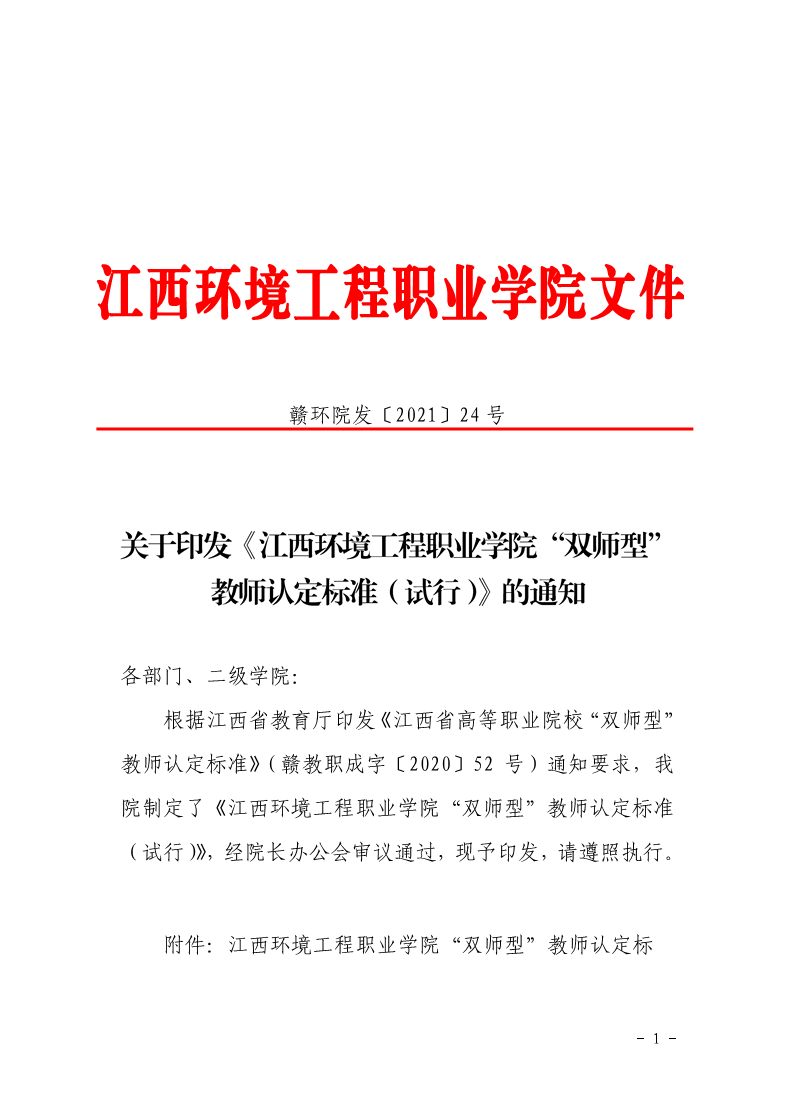 关于印发《江西环境工程职业学院“双师型” 教师认定标准(试行)》的通知 来源: 发布时间:2022-04-01 16:10:46 浏览次数: 次 【字体:小 大】 终审:jwc001 分享到: 【打印正文】