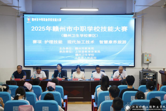 7月1日,吴学群作为专家代表出席2025年赣州市中职学校技能大赛(赣州卫生学校赛区)开幕式。江西环境工程职业学院充分发挥专业优势,全程协助承办校赣州卫生学校制定赛项规程、编写题库,并选派优秀裁判参与赛事工作,成为中高职贯通和一体化建设的重要实践。
