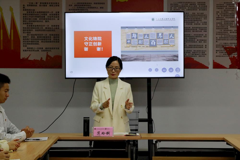 范玲俐以“商以载道、文以化人---与学生干部共话商学院文化品牌构建”为题,围绕商学院育人理念、管理文化、“商道论坛”“书香商院”品牌等进行了分享交流。她分析了文化的内涵和重要性,结合商科专业特点解读了商学院“三以”育人理念,即商以载道,传承商道,涵养学生道德品质;文以化人,厚植文化,滋养学生文化修养;技以立身,精进技能,培养学生专业技能。最终达到培养“德能兼备、文技双修、经世致用”复合型新商科人才的育人目标。她强调了商学院“质量立院、人才强院、特色兴院、文化铸院”的办学方略,并结合具体案例,就商学院“文化铸院”建设路径展开了阐述。