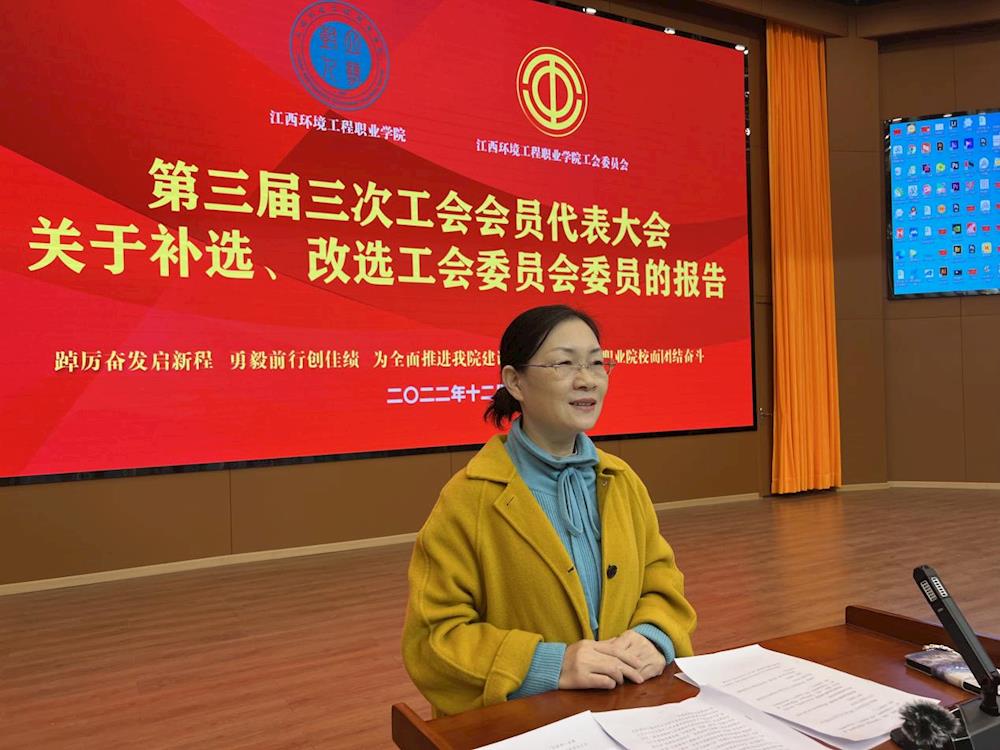 12月21日,学院第三届三次工会会员代表大会在新图书馆报告厅举行。全体院领导、153名教职工代表通过线上+线下相结合的方式参加了大会。